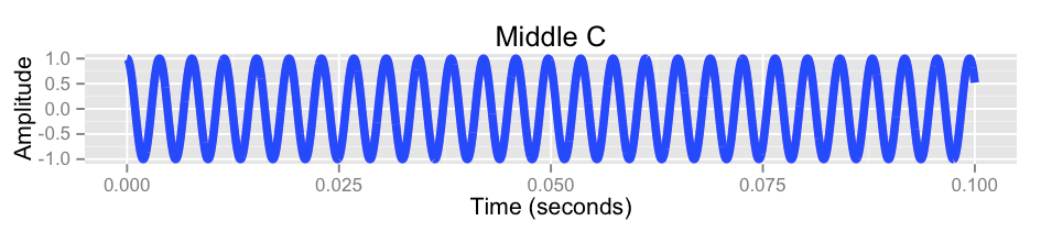 ylab('Amplitude') + xlab('Time (seconds)') + ggtitle('Middle C')